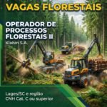 Operador Processos Florestais II – Klabin | Otacílio Costa Florestal/SC 🌲 Klabin • Silvicultura • Otacílio Costa Florestal/SC Operador Processos Florestais II Data: 10 de fev. de 2026 • Localização: Otacílio Costa Florestal, SC, BR • Empresa: Klabin S.A. 🏢 Presencial 📍 Otacílio Costa Florestal – SC 🧾 Regime CLT 🗓️ Jornada 5×2 Ser Klabin… Leia mais: Klabin contrata operador de máquinas florestais para cidade de Otacílio Costa – Sc - Suzano abre Vaga para Operador de Máquinas Florestais
