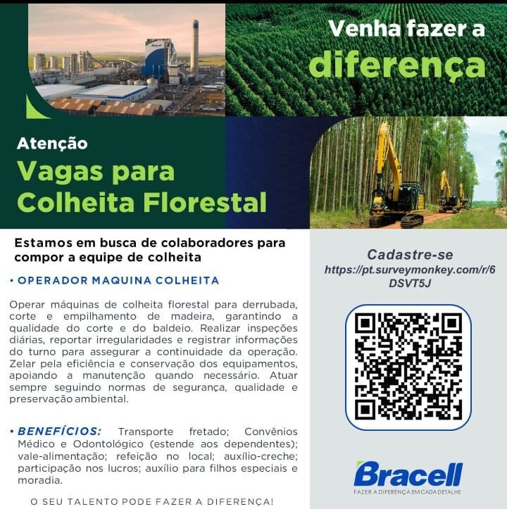 A Klabin S.A., referência nacional no setor florestal e de papel, está com vaga aberta para Operador(a) de Processos Florestais II com atuação na área de colheita florestal em Itararé – SP.