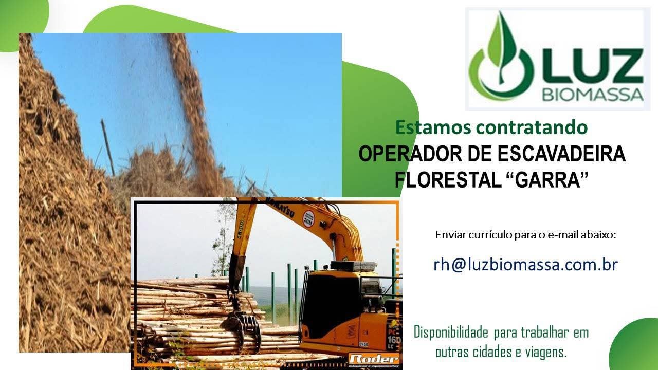 A Luz Biomassa está com oportunidade aberta para o cargo de Operador de Escavadeira Florestal “Garra”, atuando em operações florestais com movimentação de madeira e biomassa.